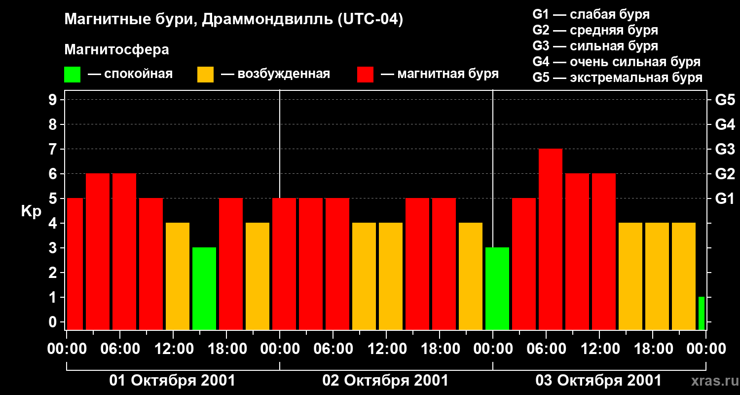 Магнитные бури в Драммондвилле 3 октября 2001 года