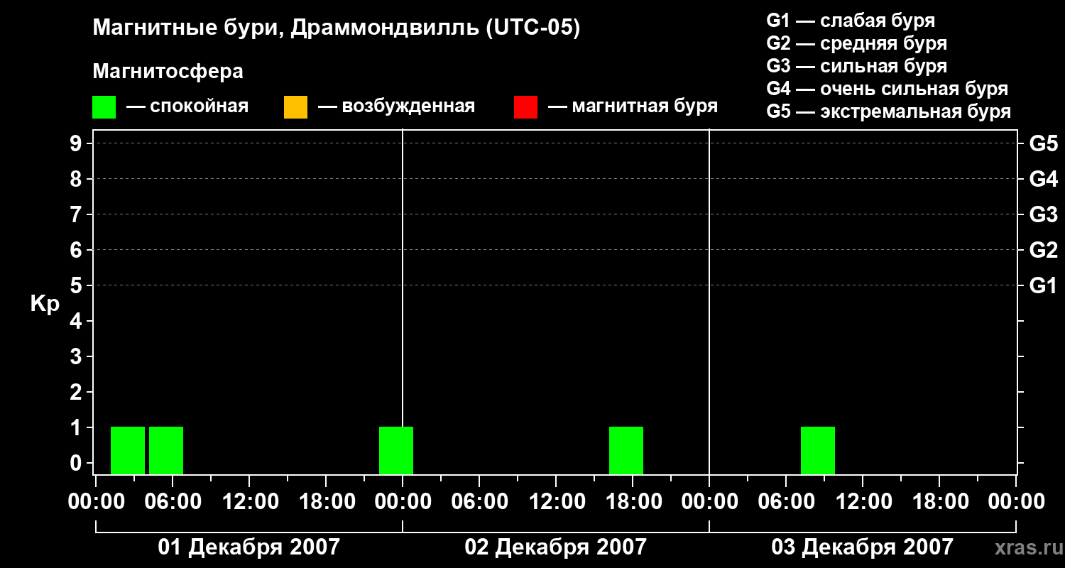 Магнитные бури в Драммондвилле 3 декабря 2007 года