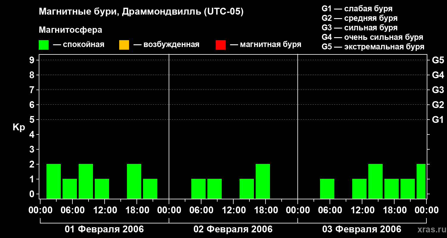 Магнитные бури в Драммондвилле 3 февраля 2006 года