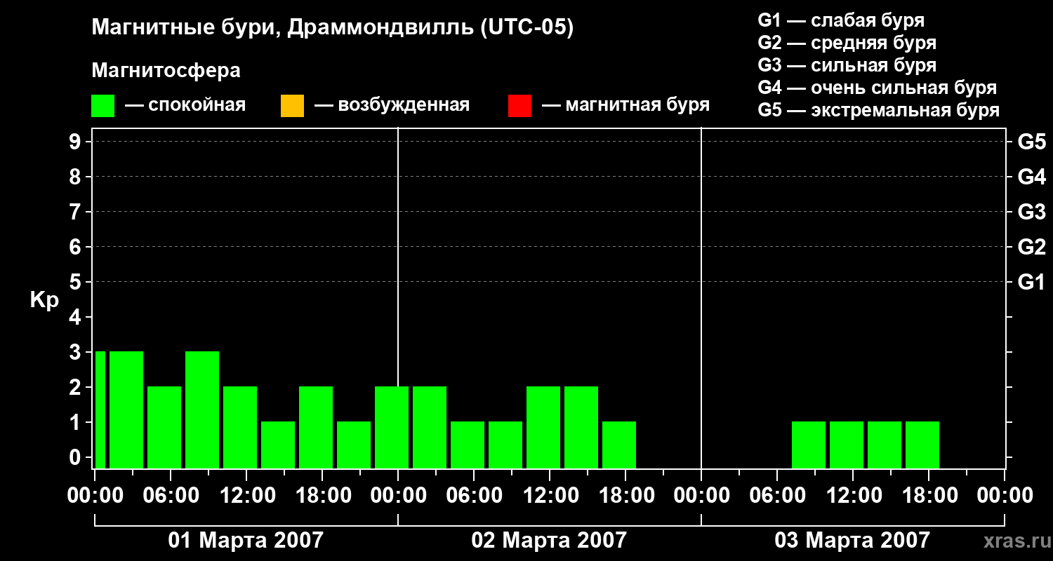 Магнитные бури в Драммондвилле 3 марта 2007 года