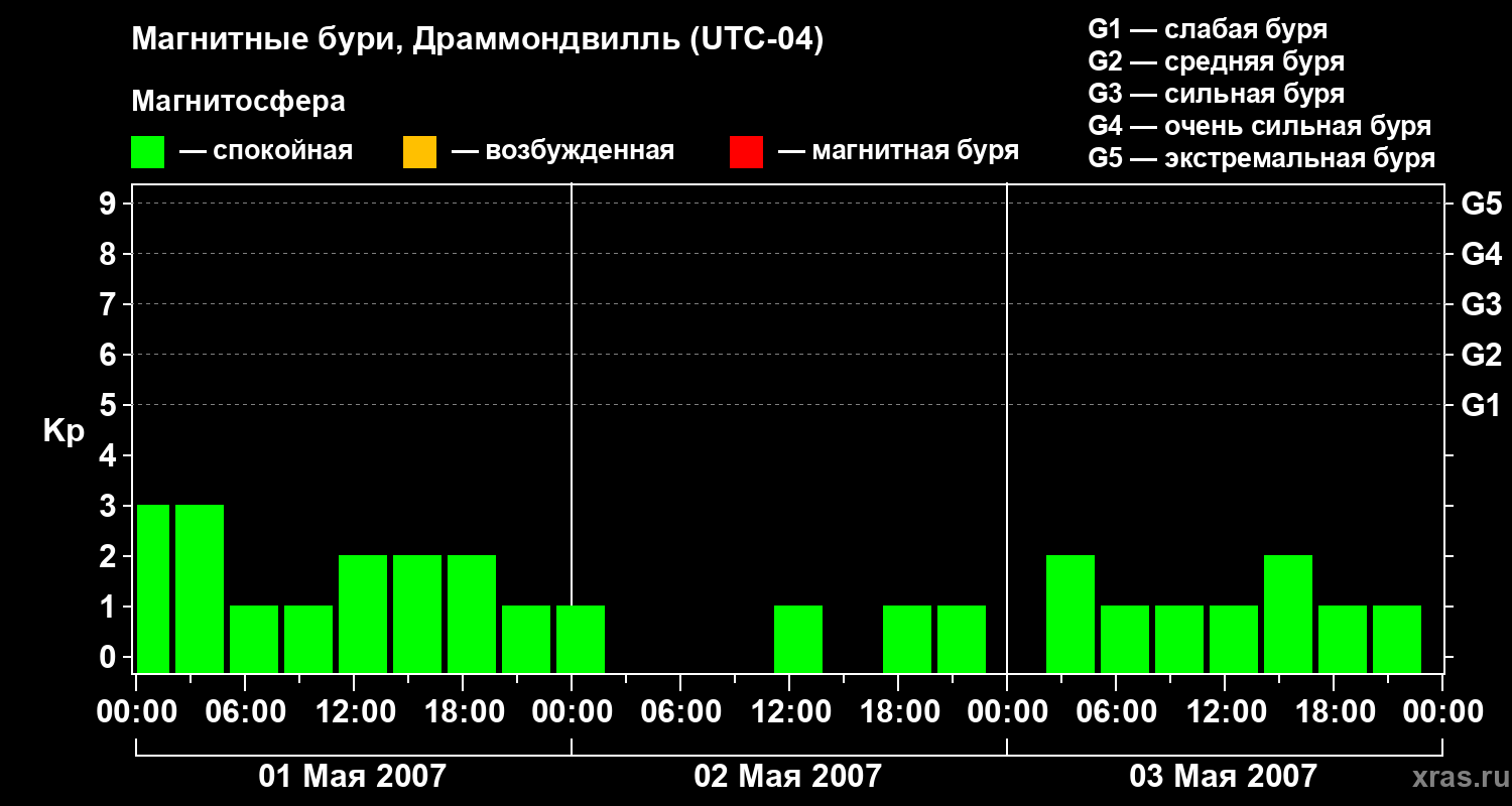 Магнитные бури в Драммондвилле 3 мая 2007 года