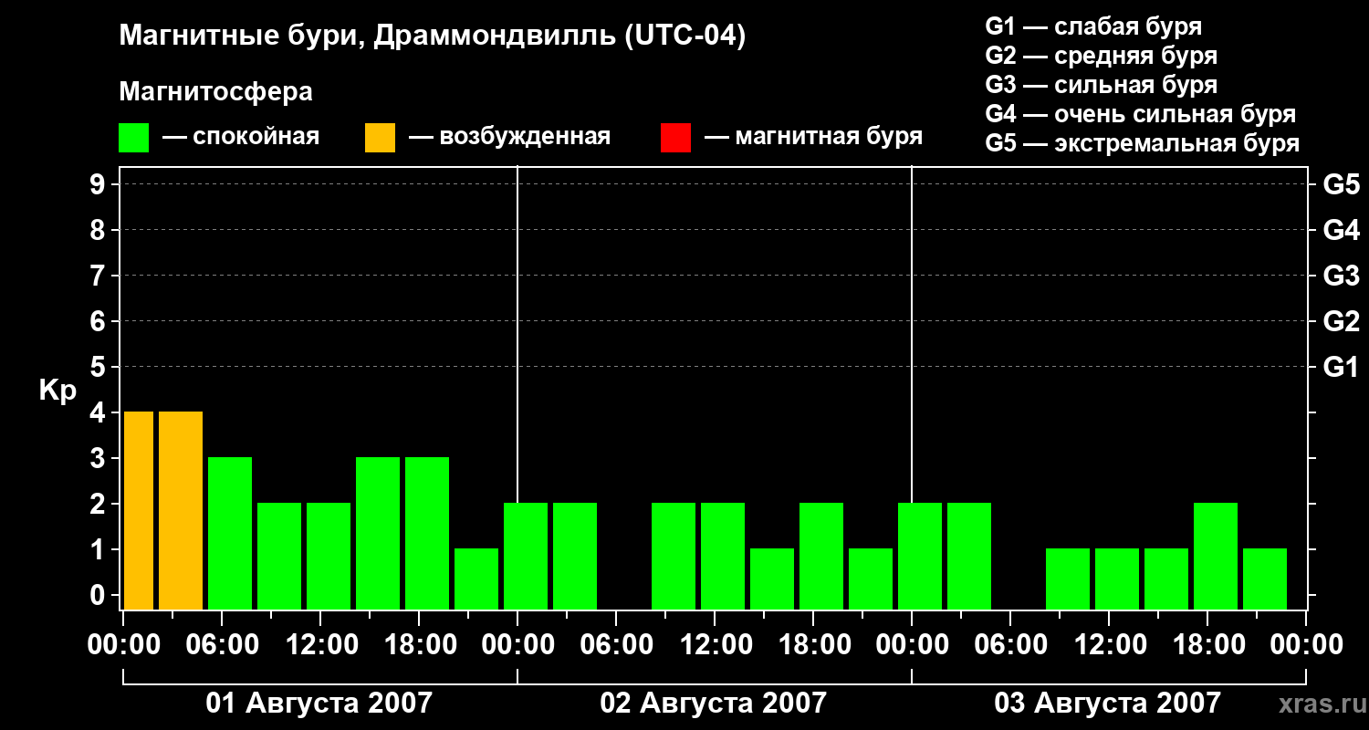 Магнитные бури в Драммондвилле 3 августа 2007 года