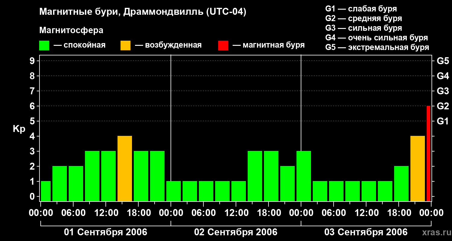 Магнитные бури в Драммондвилле 3 сентября 2006 года