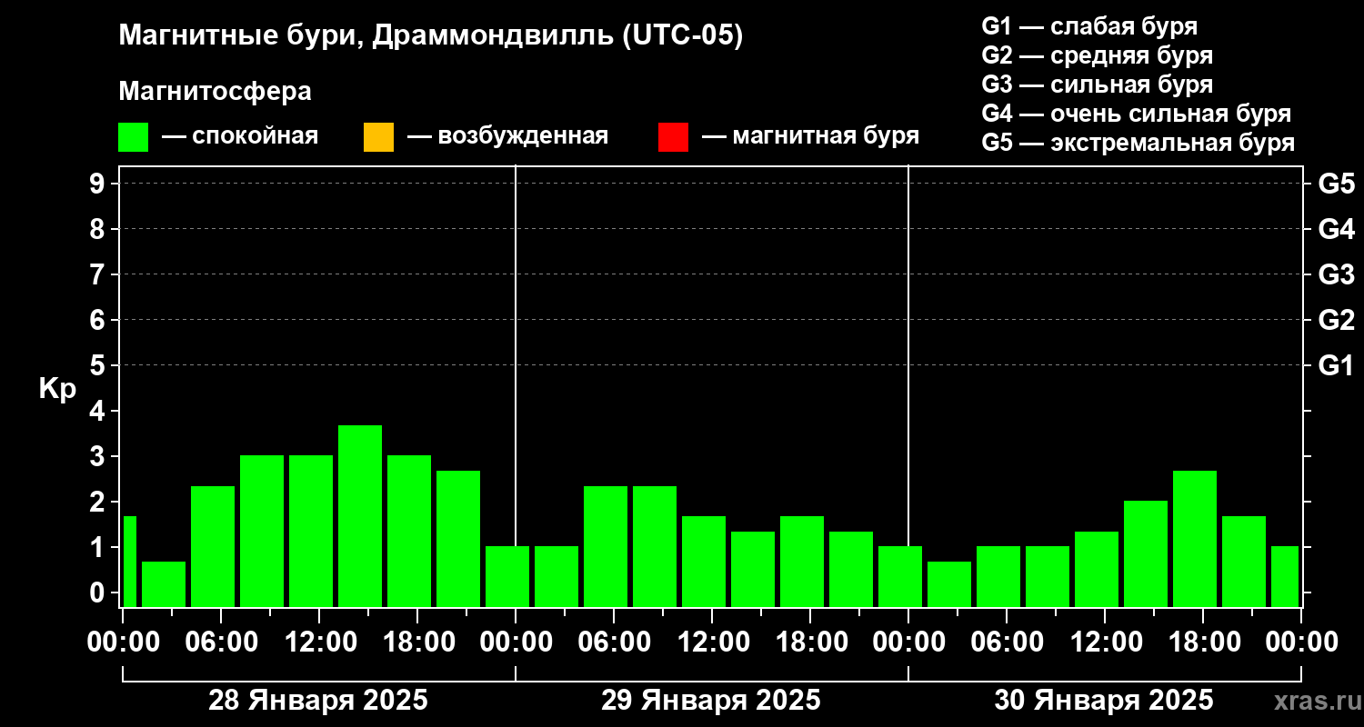 Магнитные бури в Драммондвилле 30 января 2025 года