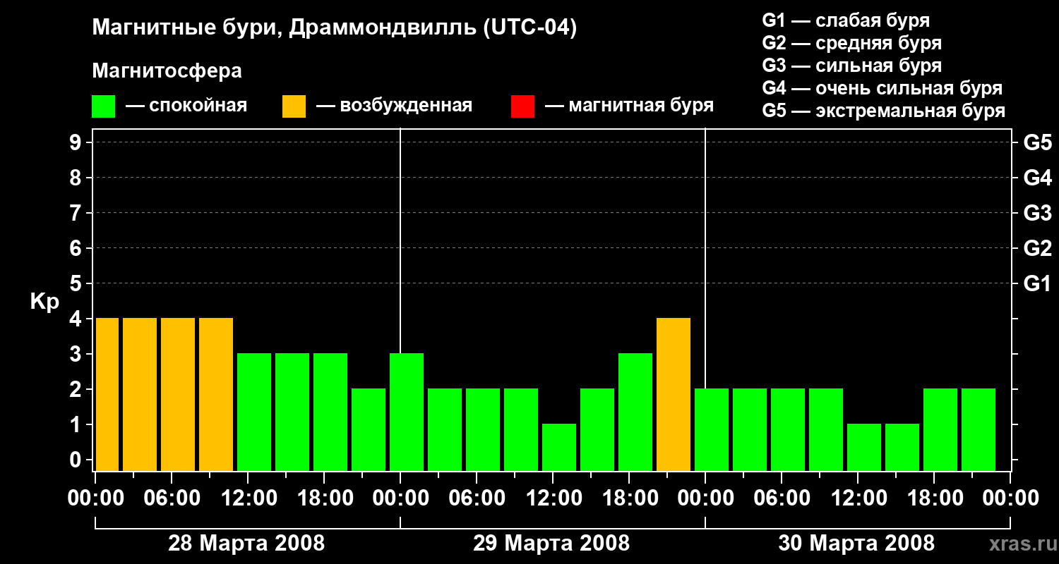 Магнитные бури в Драммондвилле 30 марта 2008 года