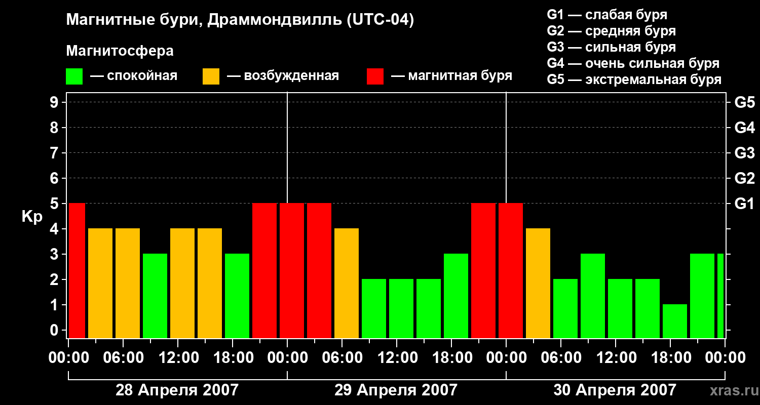 Магнитные бури в Драммондвилле 30 апреля 2007 года