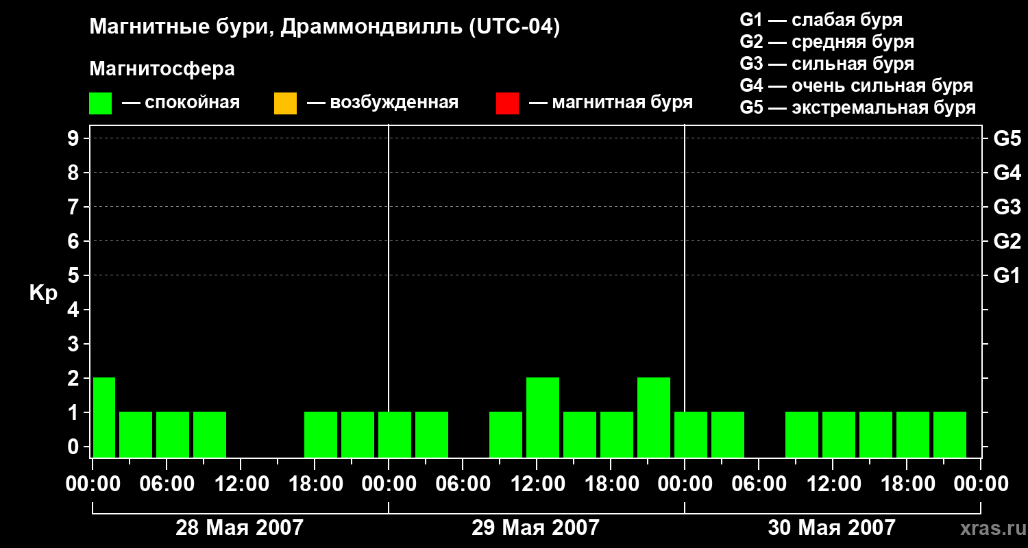 Магнитные бури в Драммондвилле 30 мая 2007 года