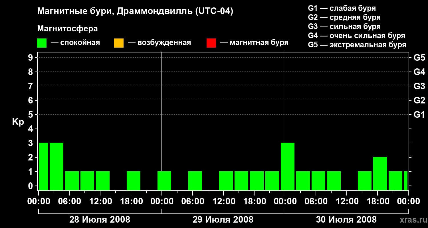 Магнитные бури в Драммондвилле 30 июля 2008 года