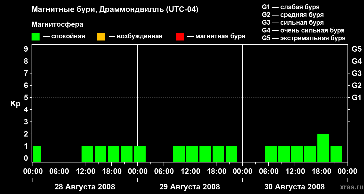 Магнитные бури в Драммондвилле 30 августа 2008 года