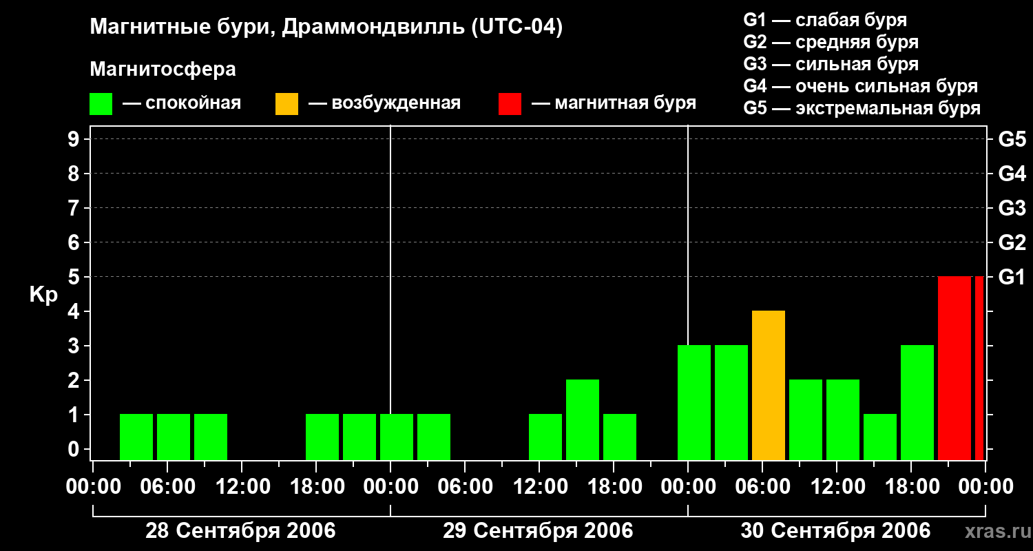 Магнитные бури в Драммондвилле 30 сентября 2006 года