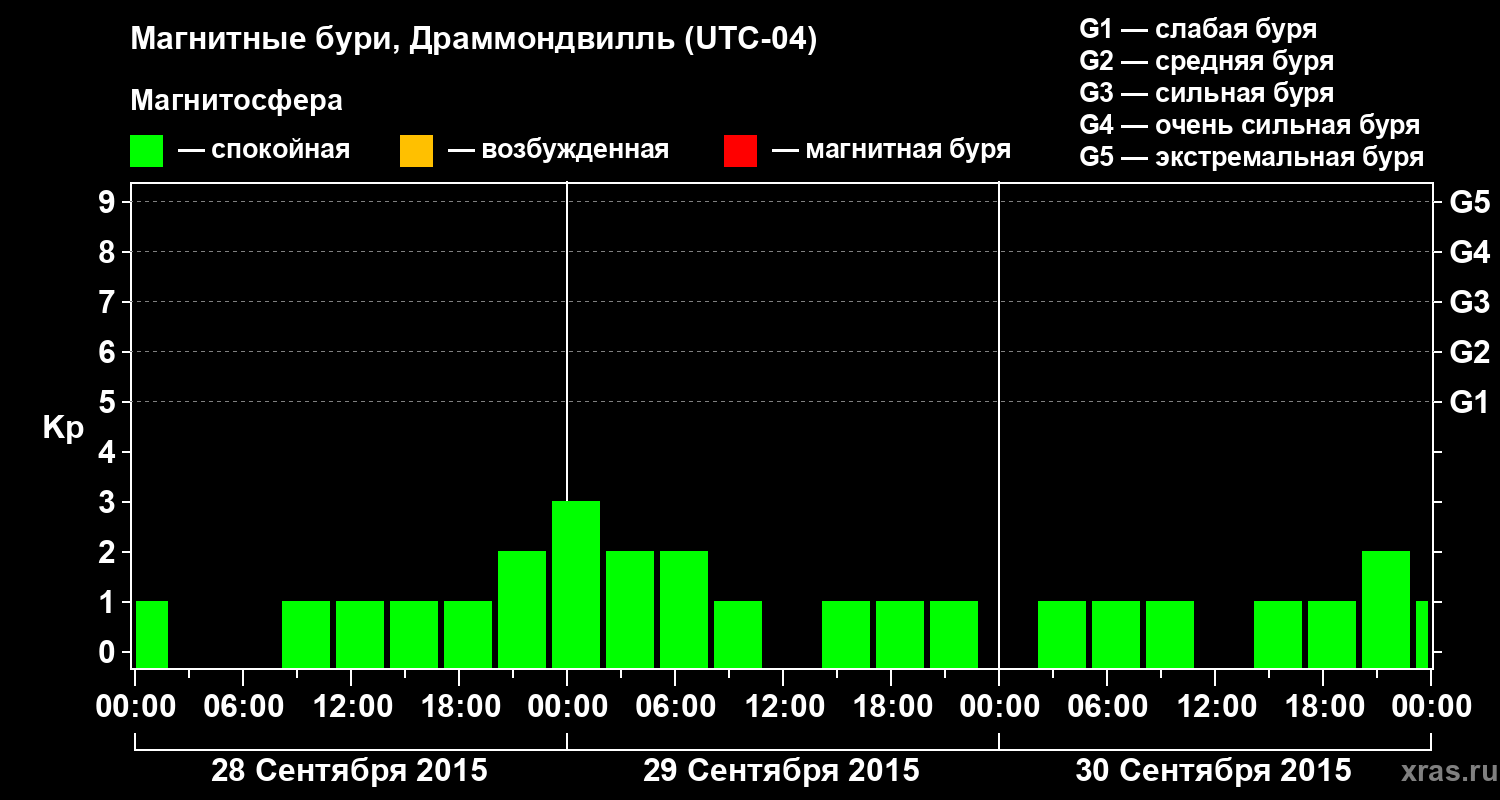 Магнитные бури в Драммондвилле 30 сентября 2015 года