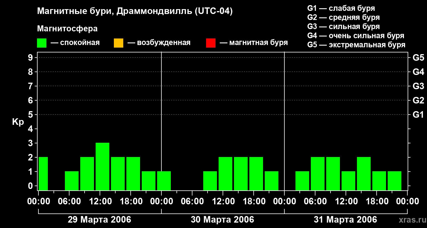 Магнитные бури в Драммондвилле 31 марта 2006 года