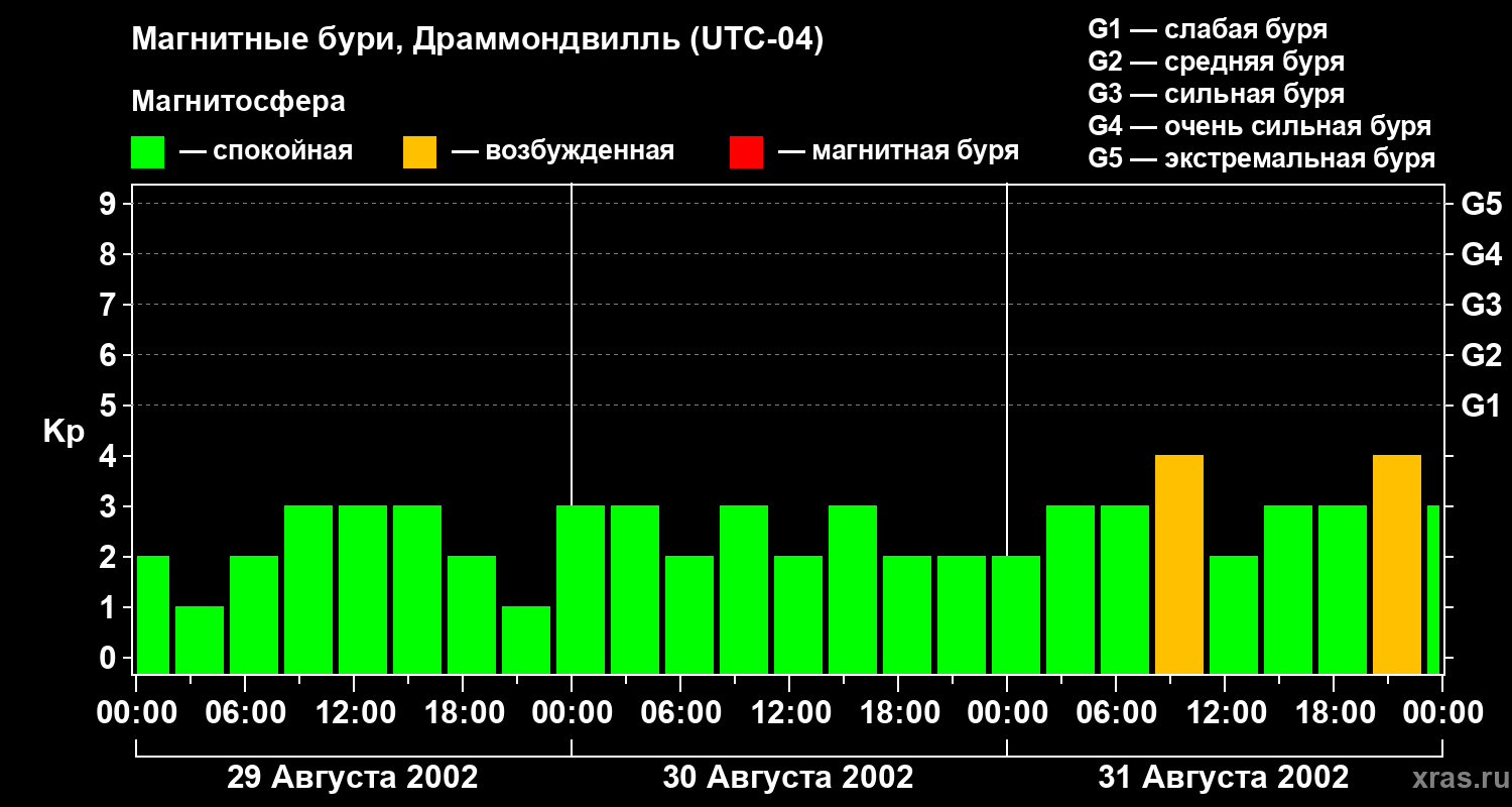 Магнитные бури в Драммондвилле 31 августа 2002 года