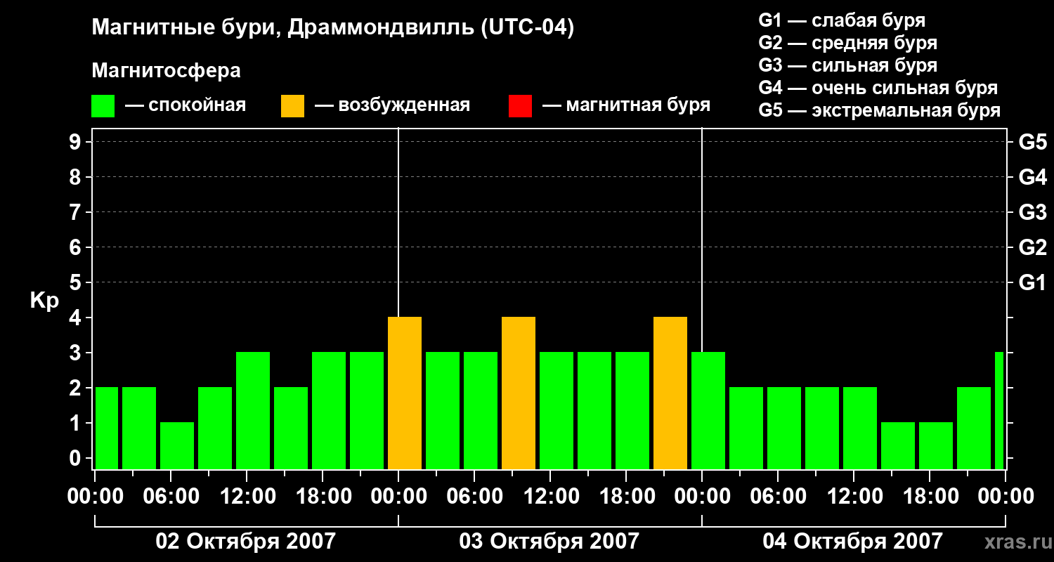 Магнитные бури в Драммондвилле 4 октября 2007 года