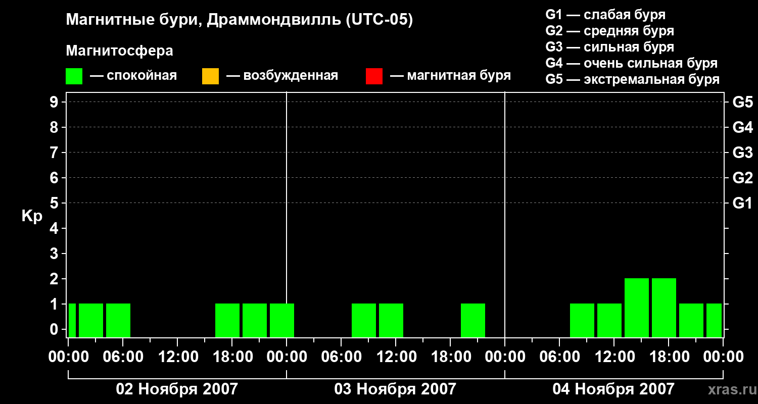 Магнитные бури в Драммондвилле 4 ноября 2007 года