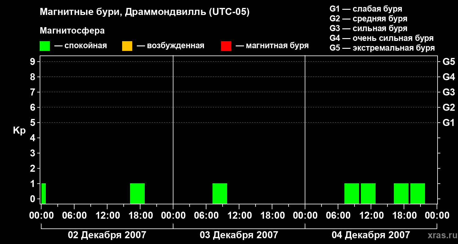 Магнитные бури в Драммондвилле 4 декабря 2007 года