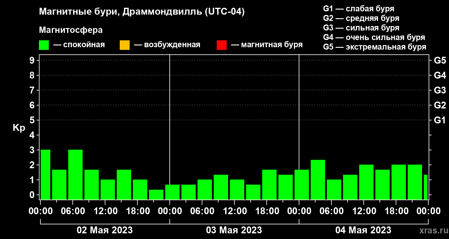 Магнитные бури в Драммондвилле 4 мая 2023 года