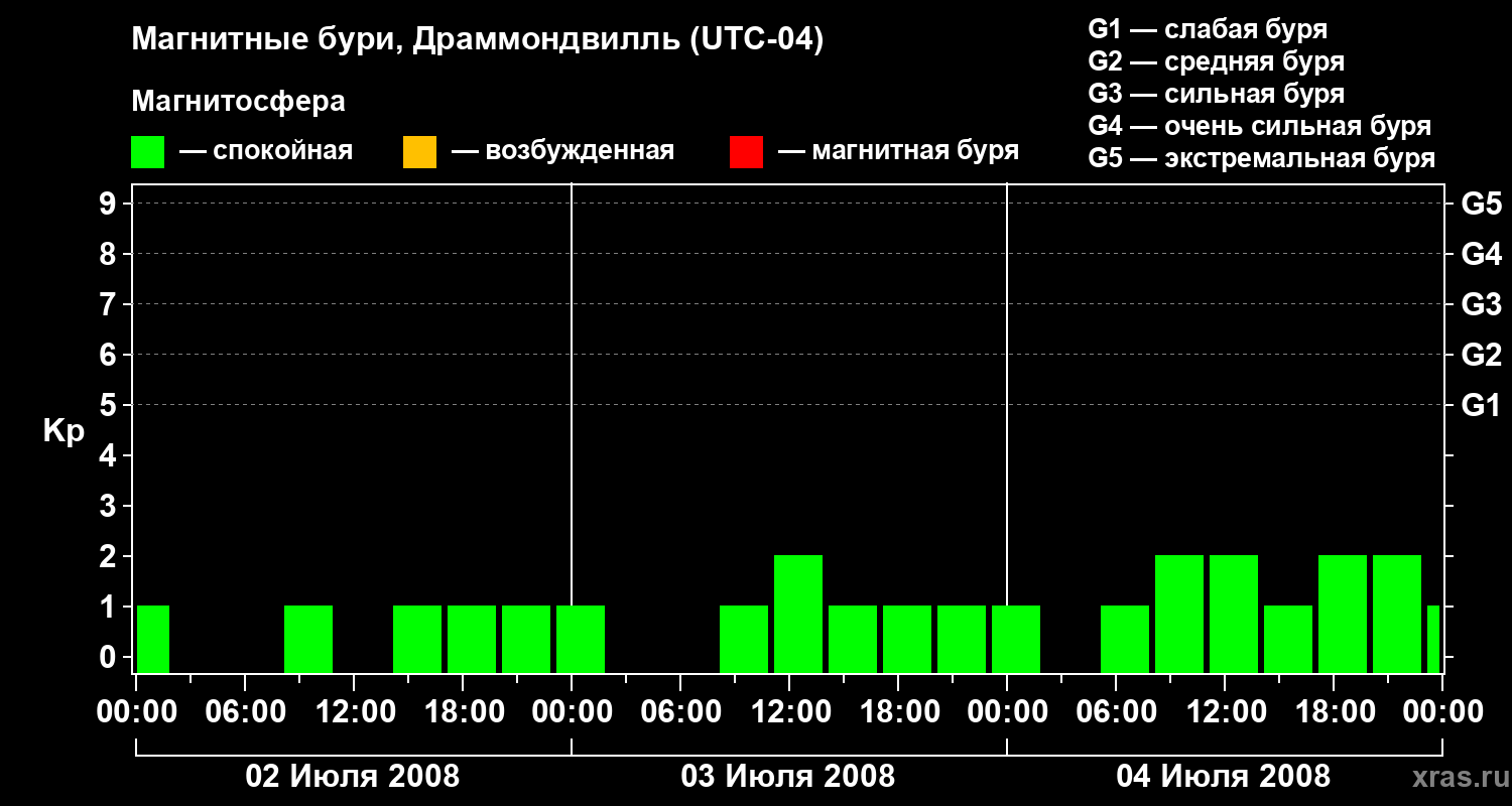 Магнитные бури в Драммондвилле 4 июля 2008 года
