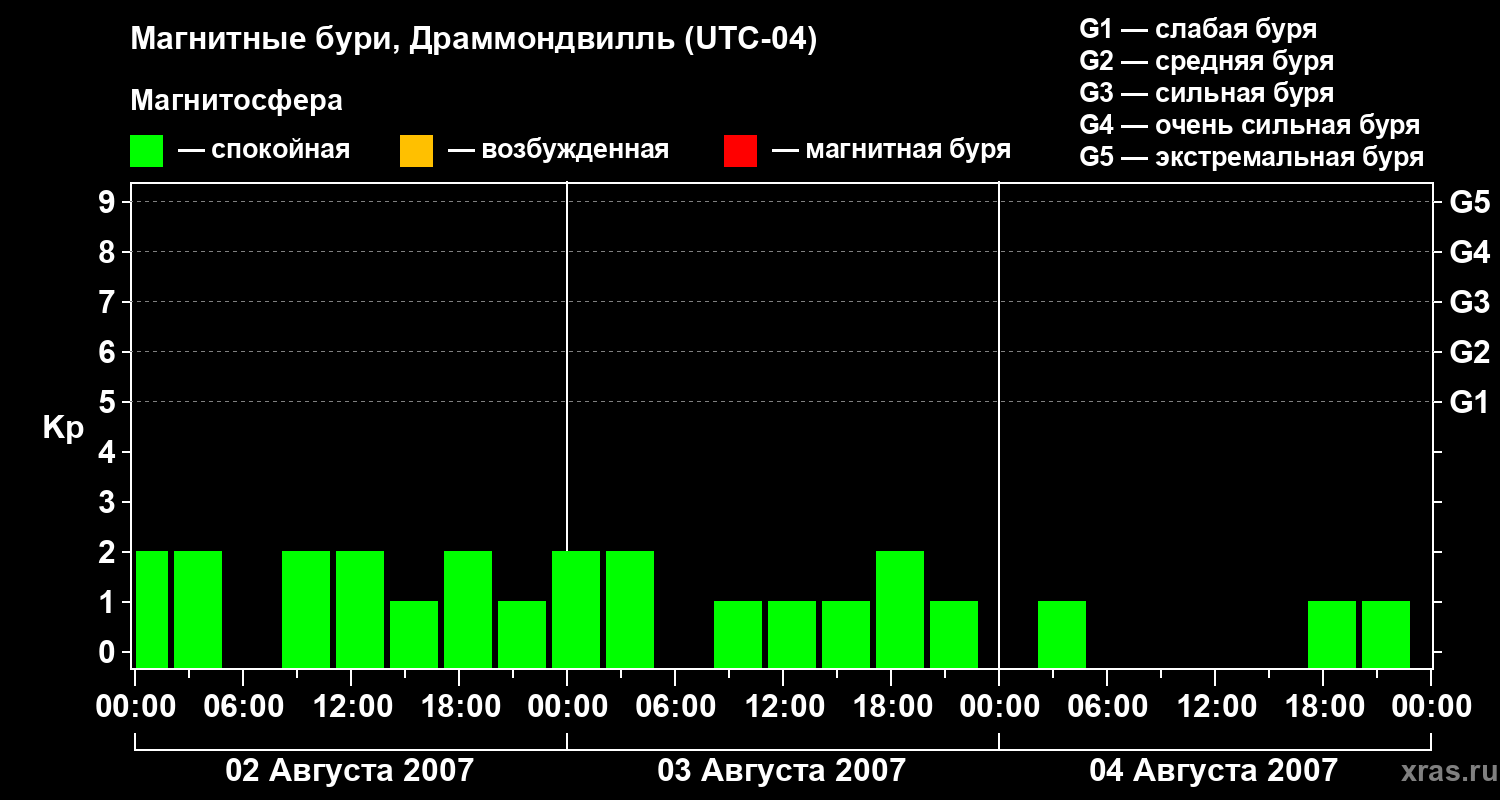 Магнитные бури в Драммондвилле 4 августа 2007 года