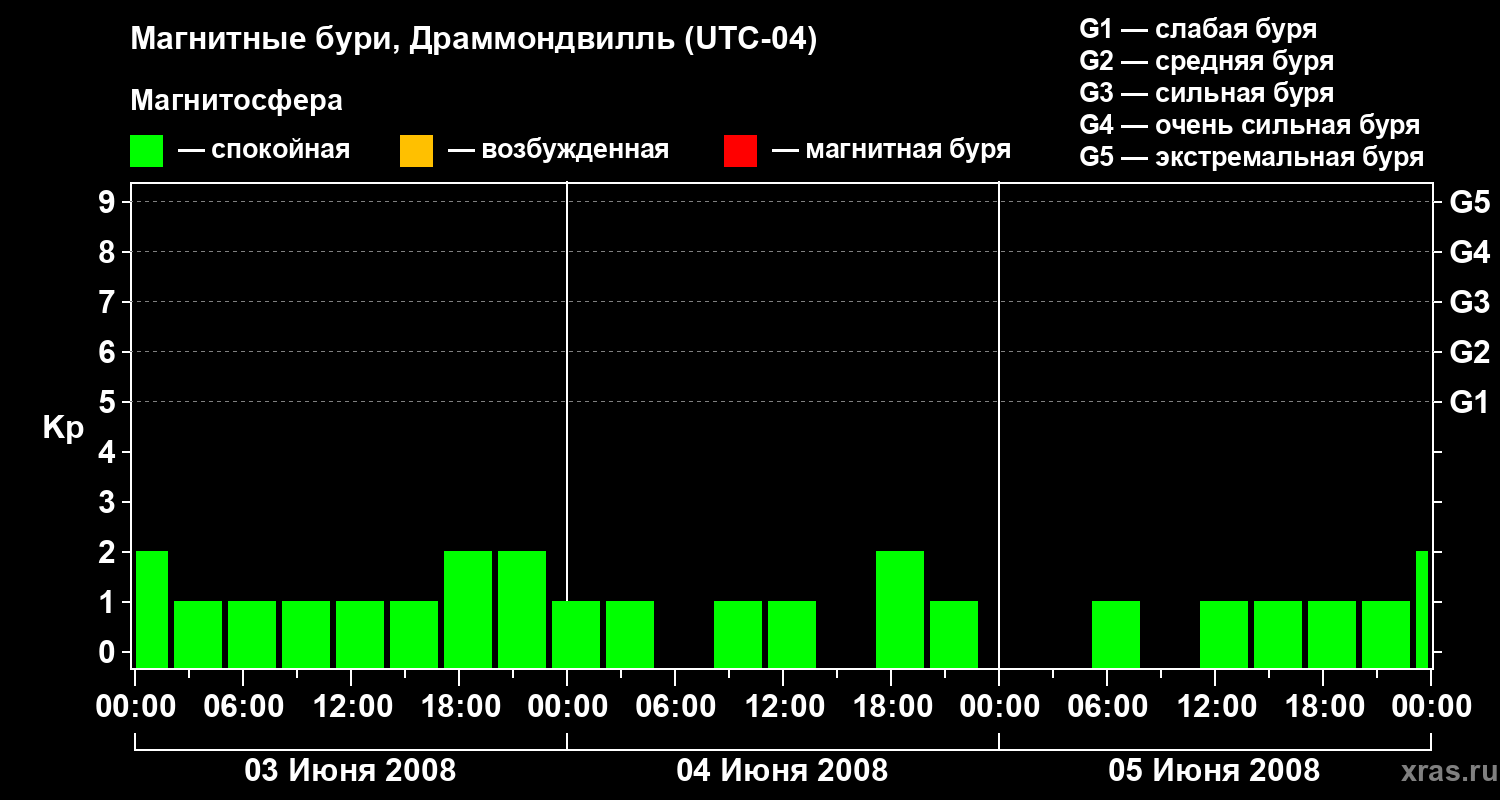 Магнитные бури в Драммондвилле 5 июня 2008 года