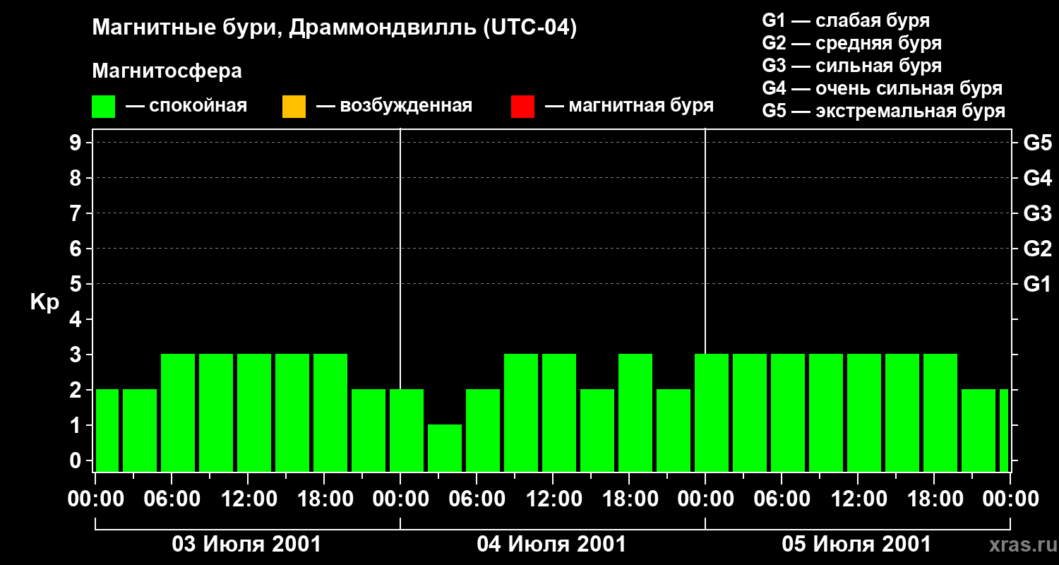 Магнитные бури в Драммондвилле 5 июля 2001 года