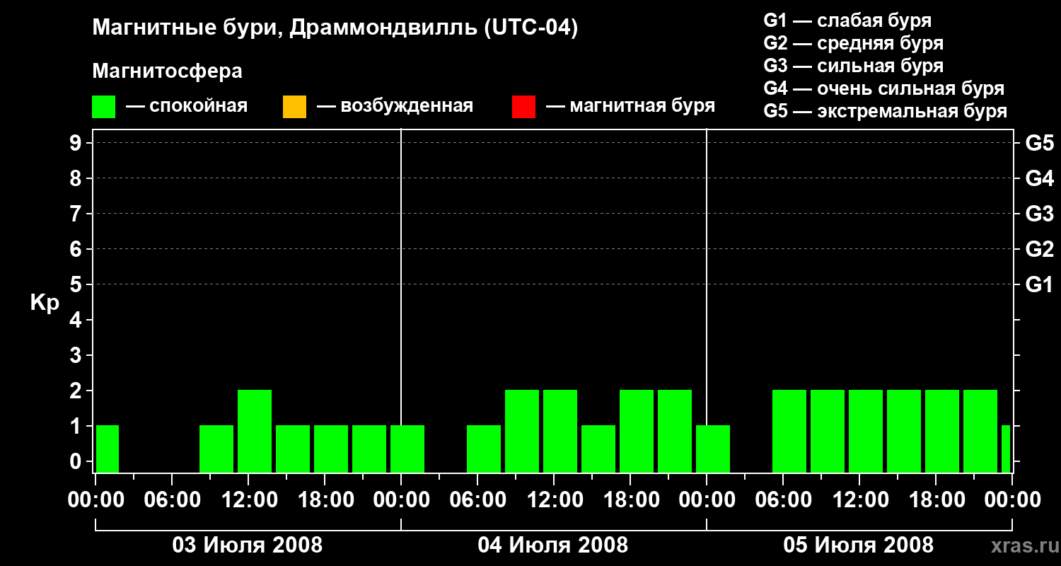 Магнитные бури в Драммондвилле 5 июля 2008 года