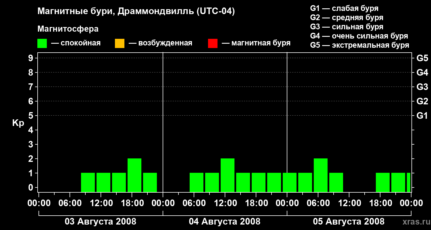 Магнитные бури в Драммондвилле 5 августа 2008 года