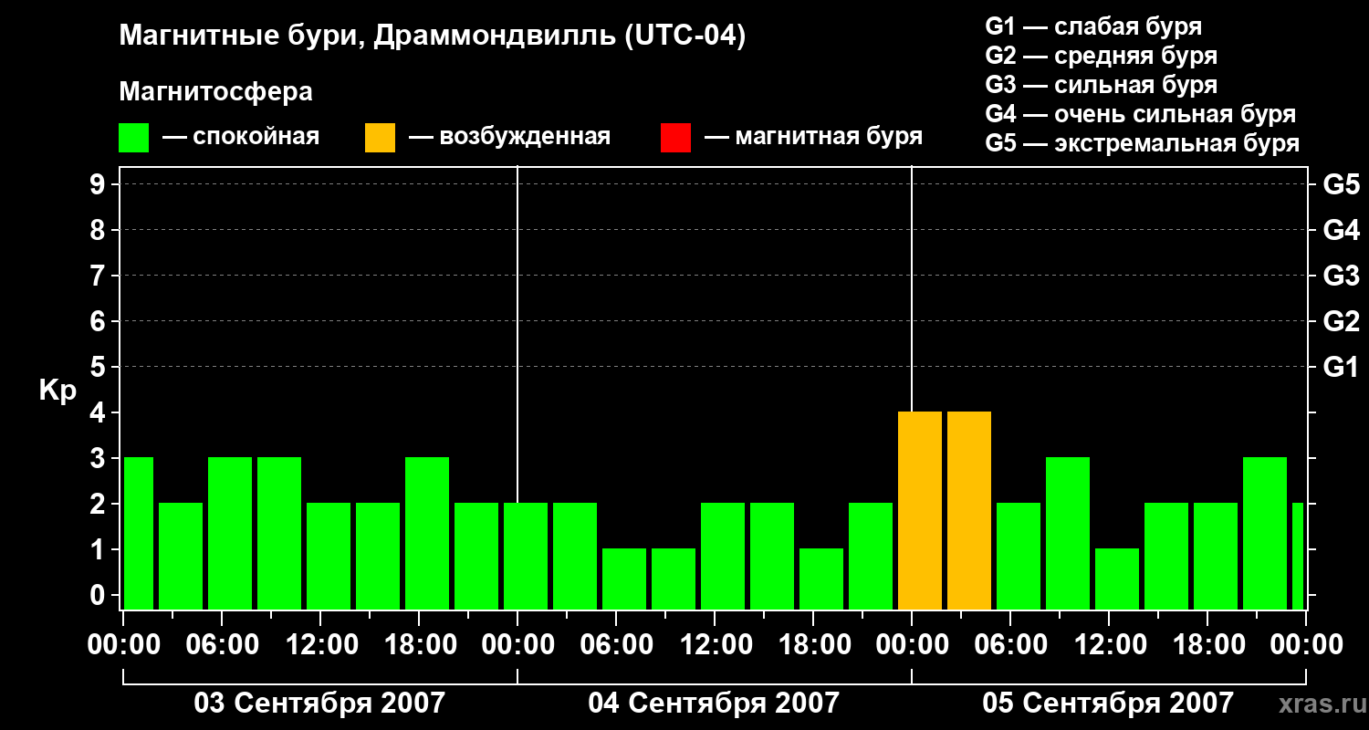 Магнитные бури в Драммондвилле 5 сентября 2007 года