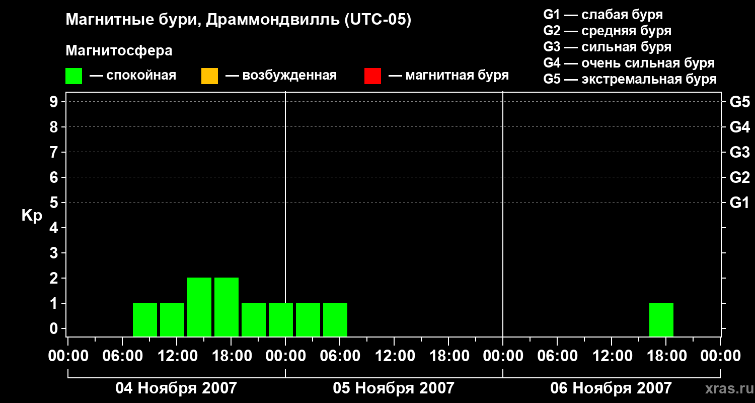 Магнитные бури в Драммондвилле 6 ноября 2007 года
