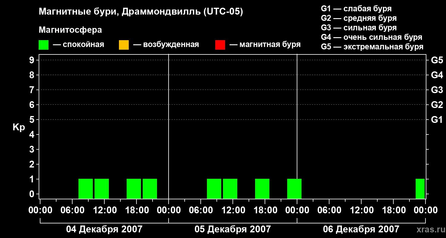 Магнитные бури в Драммондвилле 6 декабря 2007 года