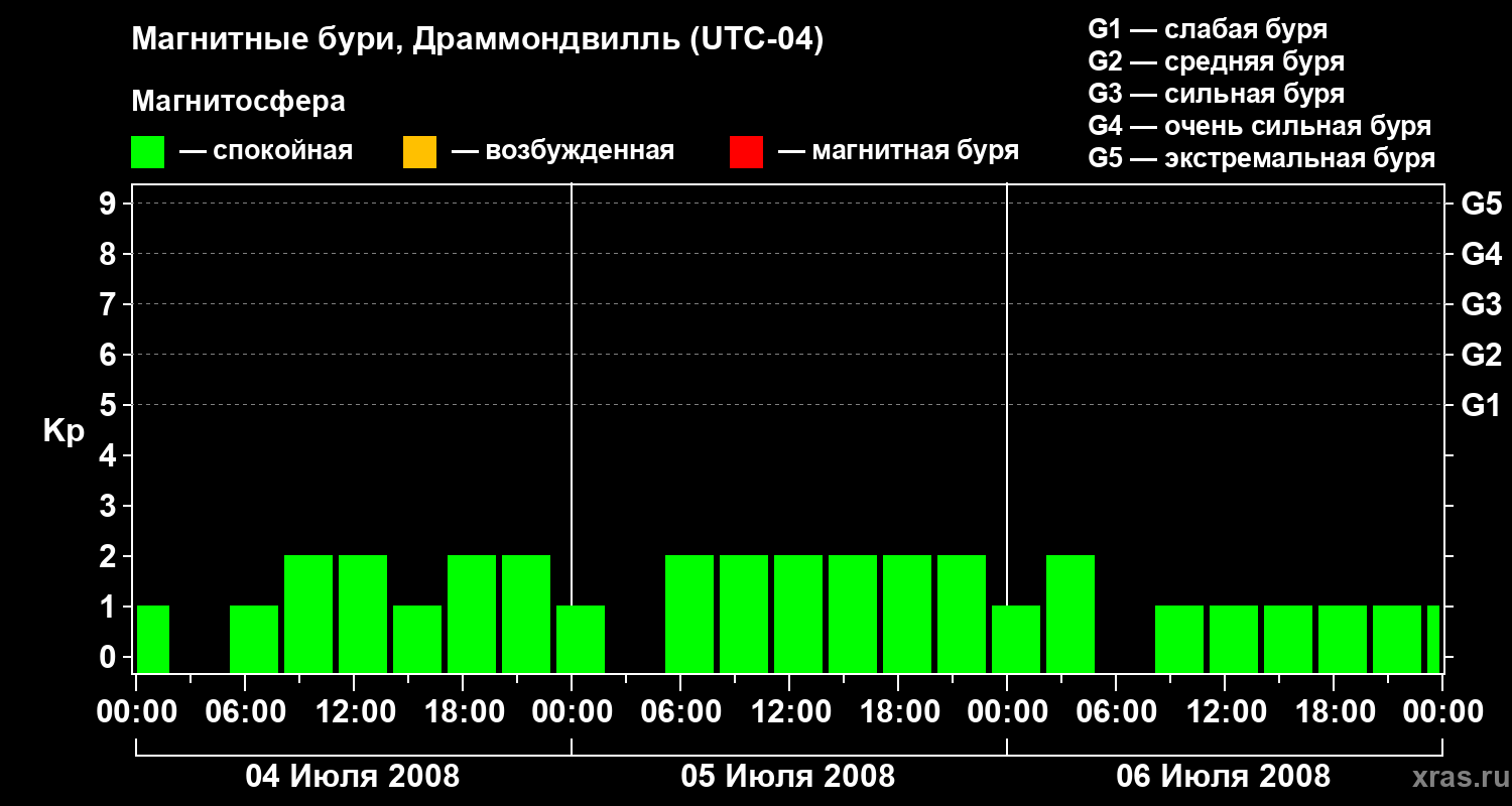 Магнитные бури в Драммондвилле 6 июля 2008 года