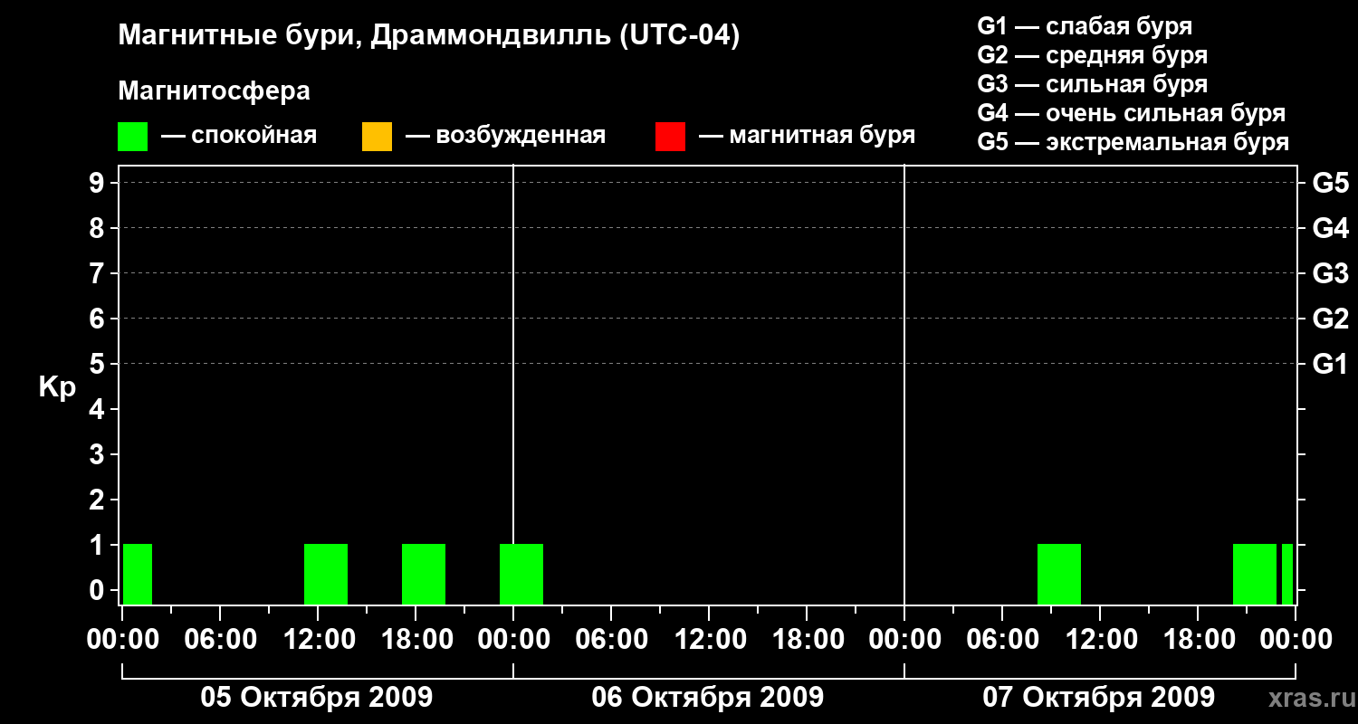 Магнитные бури в Драммондвилле 7 октября 2009 года