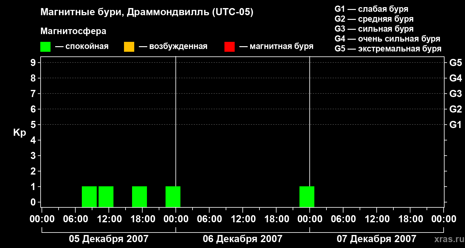 Магнитные бури в Драммондвилле 7 декабря 2007 года