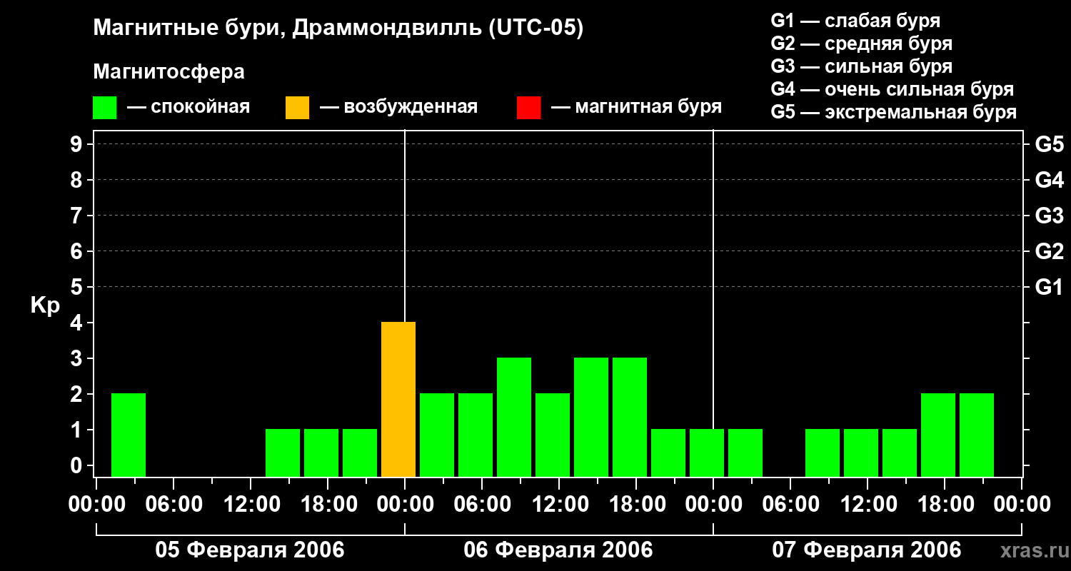 Магнитные бури в Драммондвилле 7 февраля 2006 года