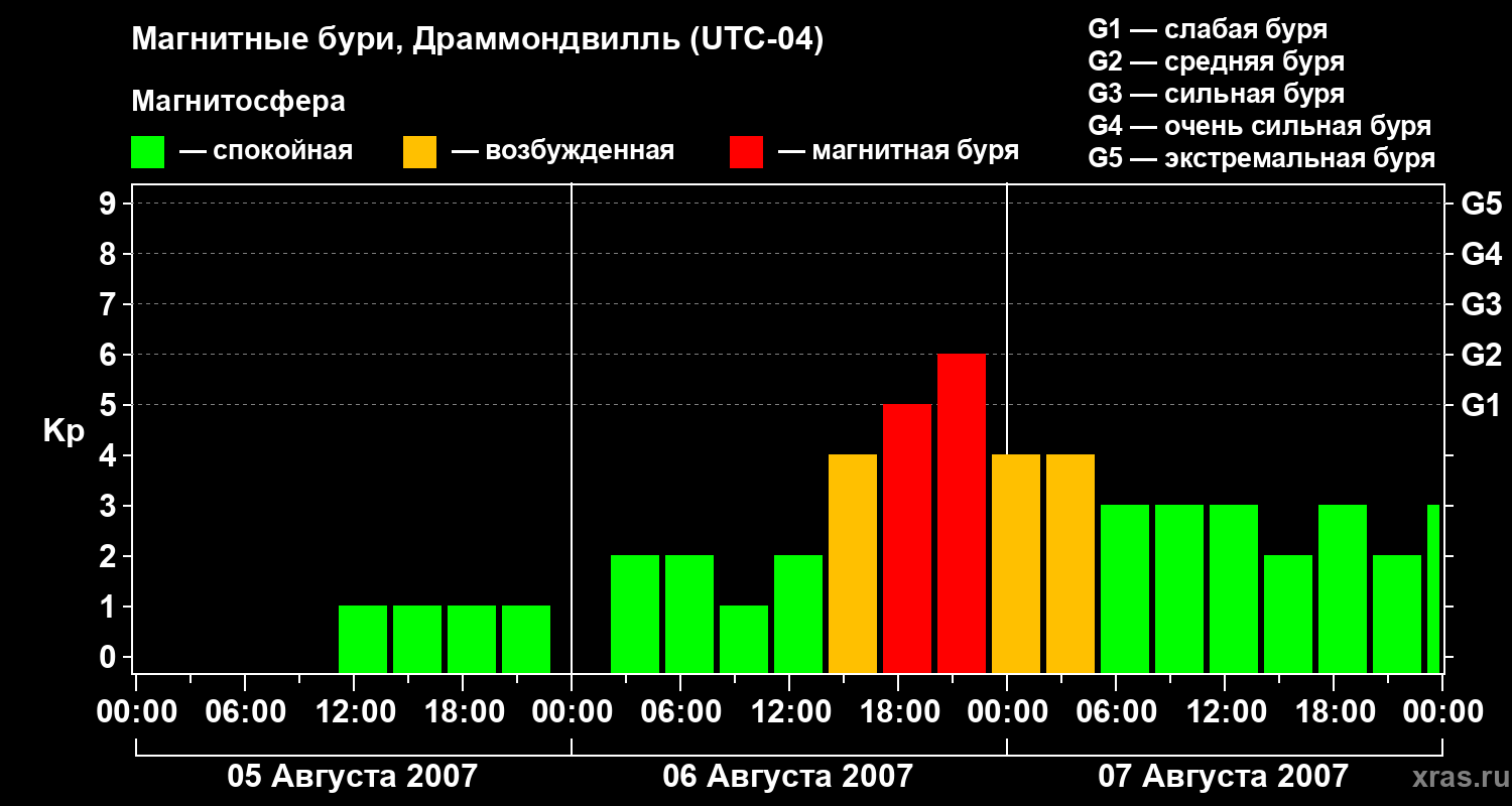 Магнитные бури в Драммондвилле 7 августа 2007 года