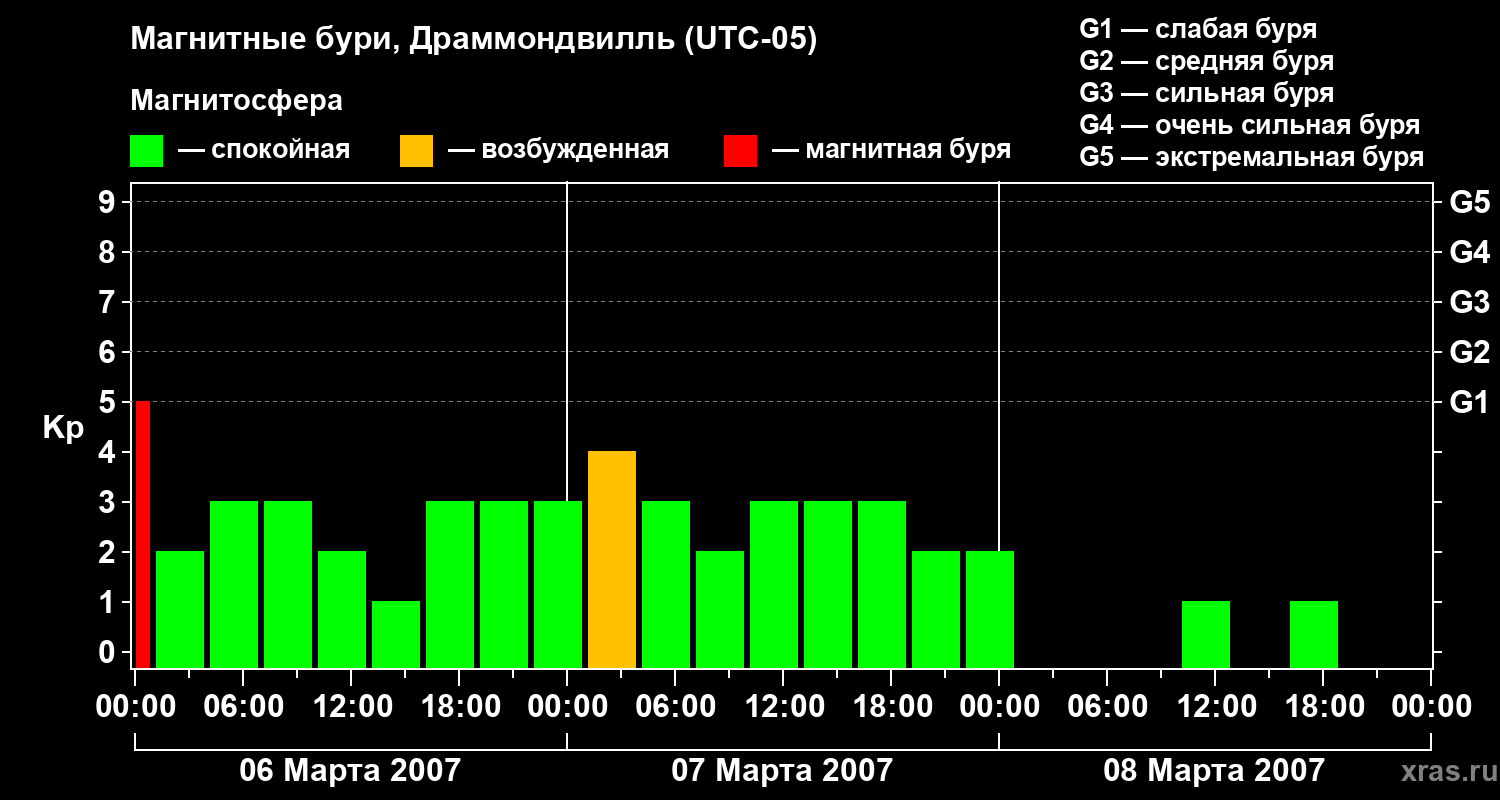 Магнитные бури в Драммондвилле 8 марта 2007 года