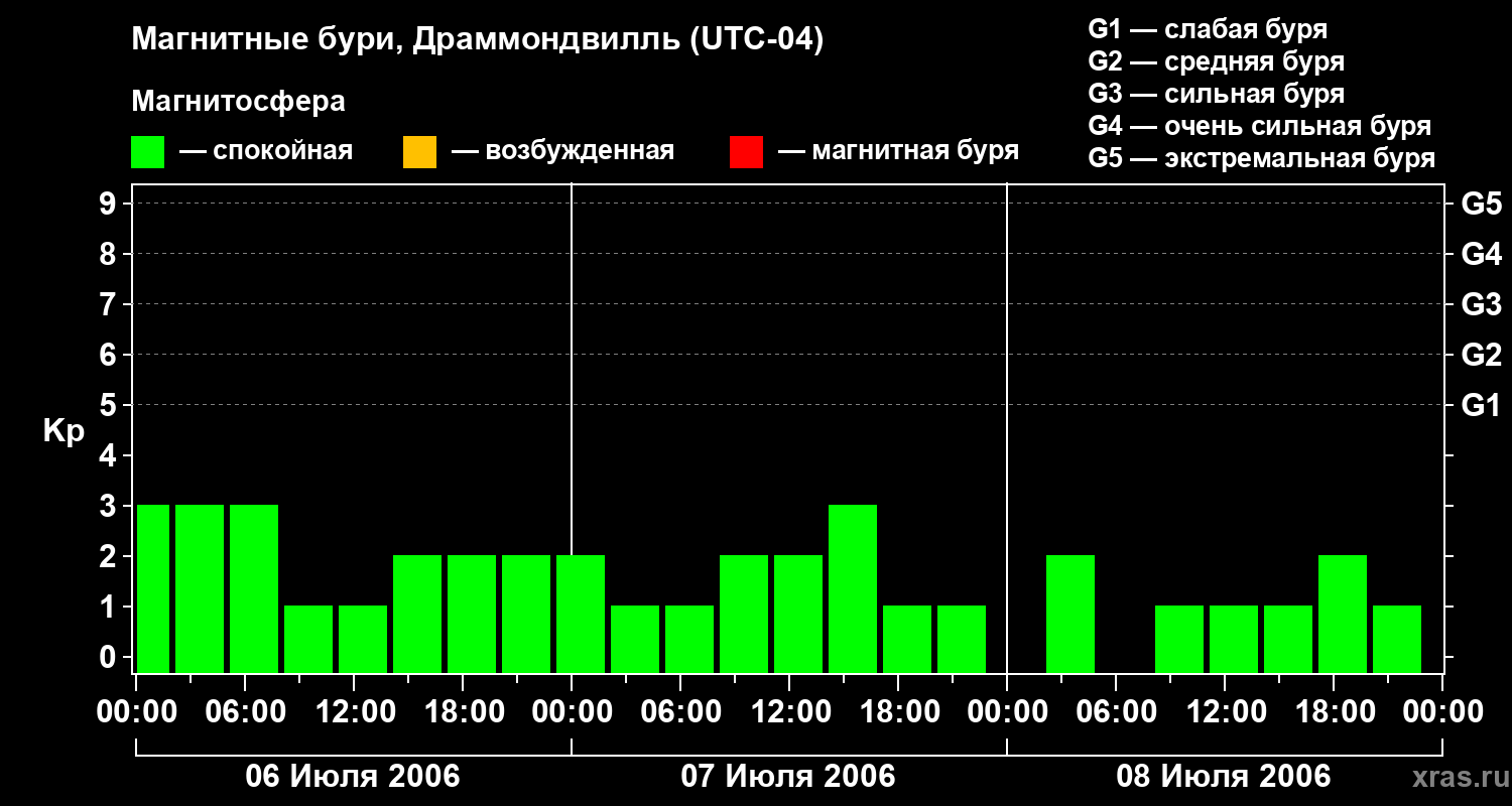 Магнитные бури в Драммондвилле 8 июля 2006 года