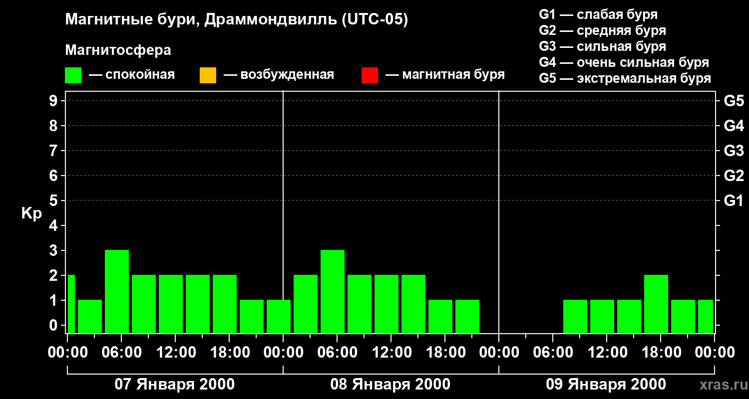 Магнитные бури в Драммондвилле 9 января 2000 года