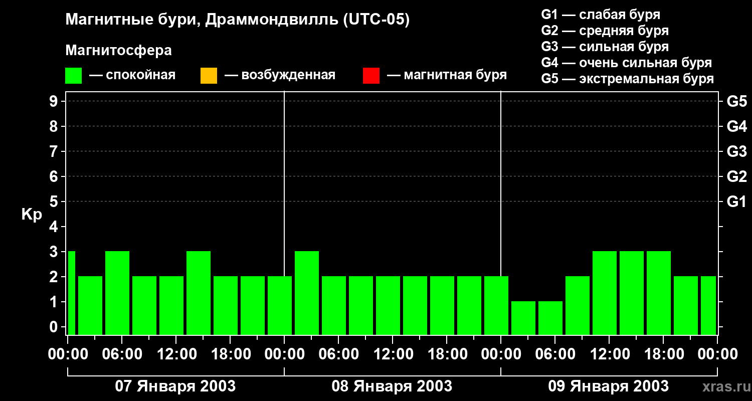 Магнитные бури в Драммондвилле 9 января 2003 года