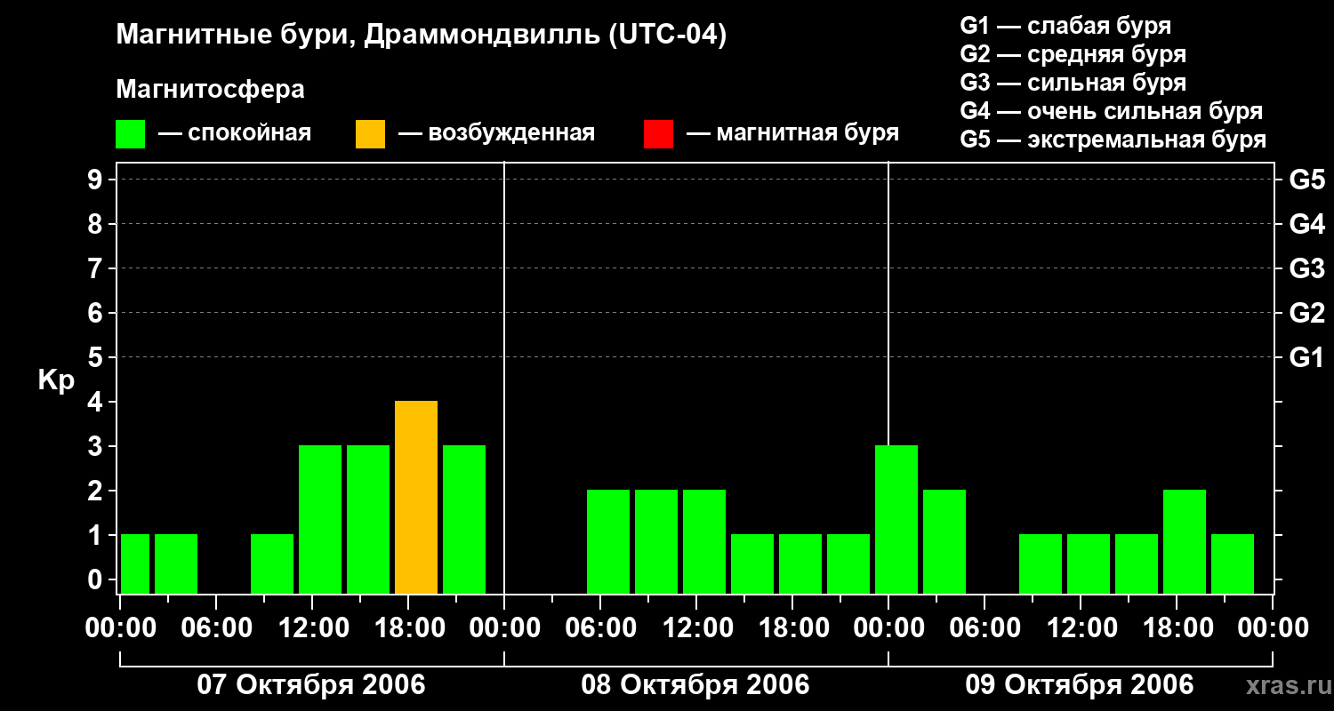 Магнитные бури в Драммондвилле 9 октября 2006 года