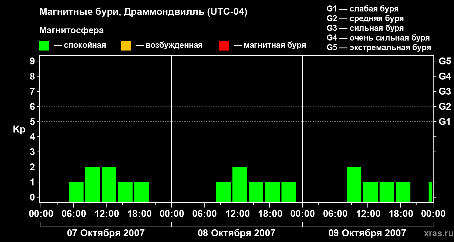 Магнитные бури в Драммондвилле 9 октября 2007 года
