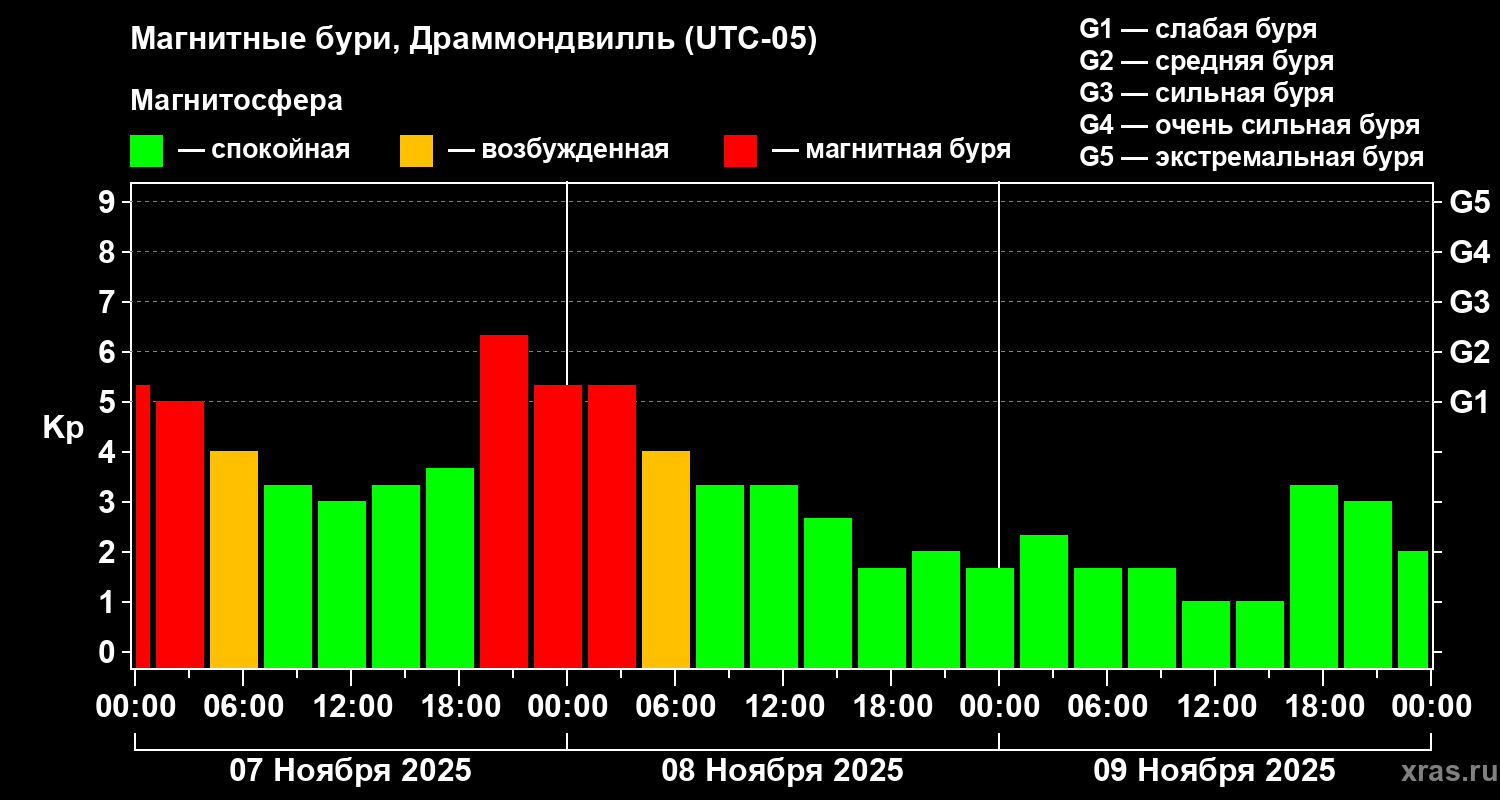 Магнитные бури в Драммондвилле 9 ноября 2025 года