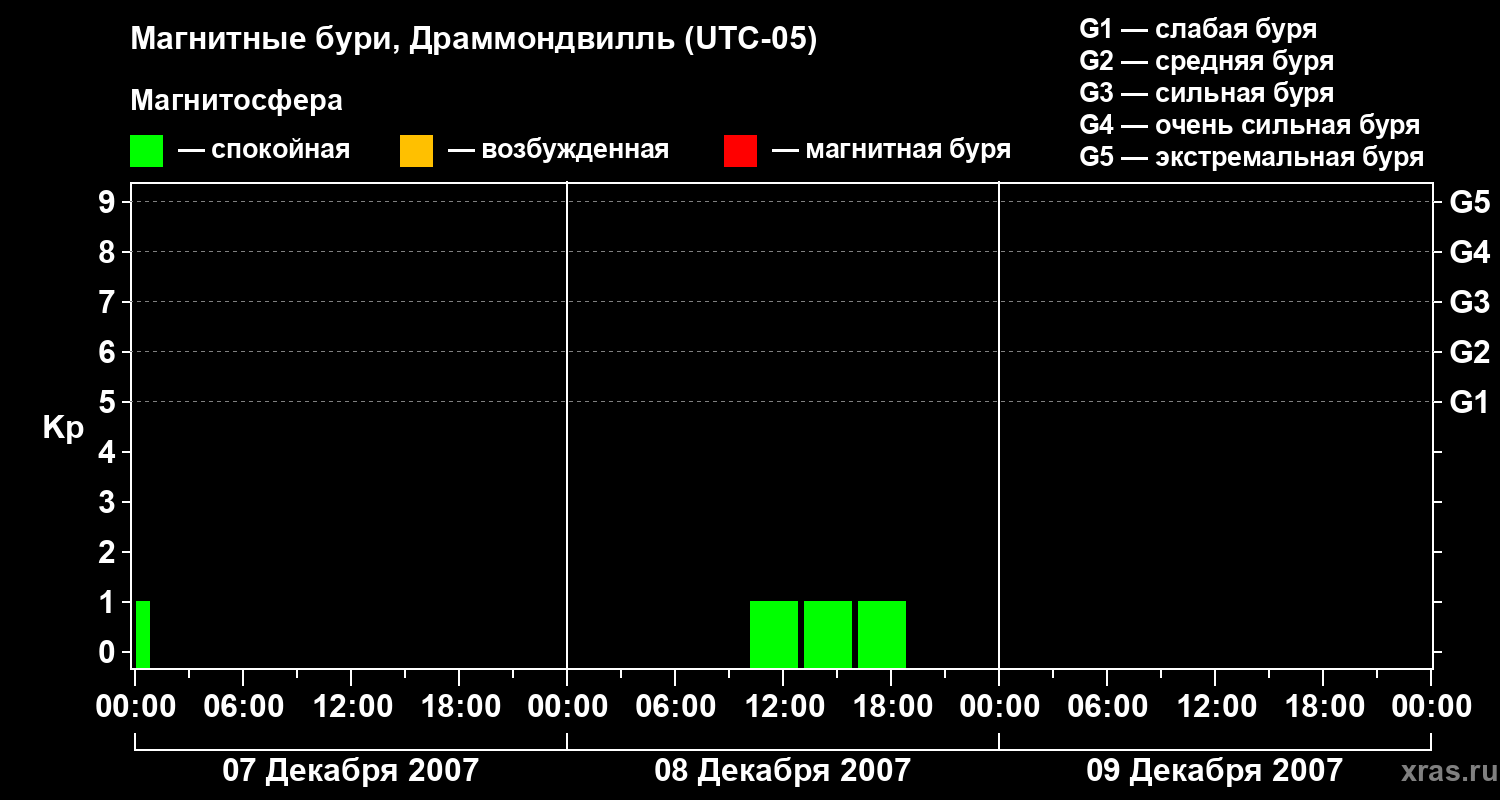Магнитные бури в Драммондвилле 9 декабря 2007 года