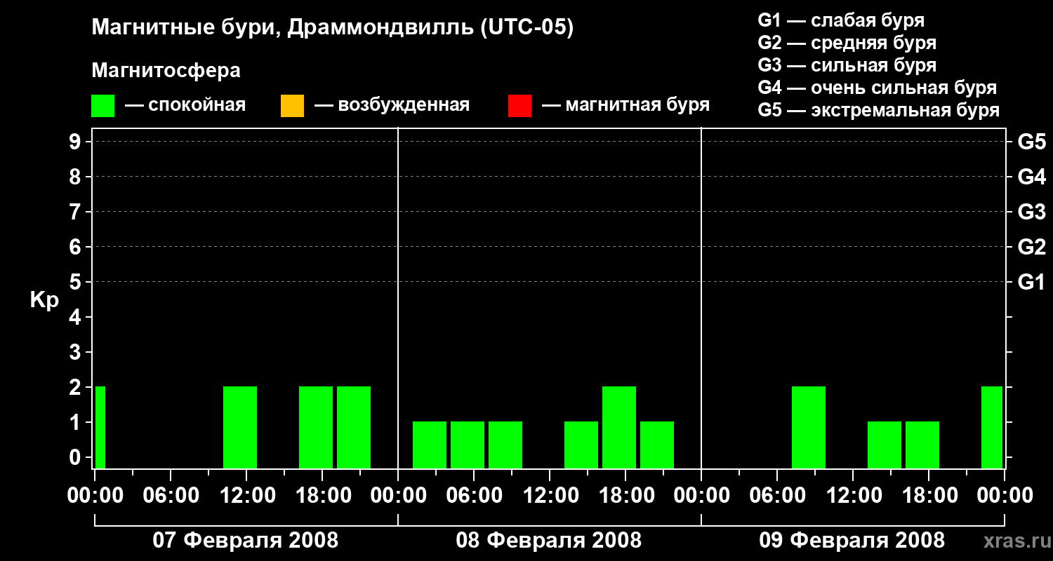 Магнитные бури в Драммондвилле 9 февраля 2008 года