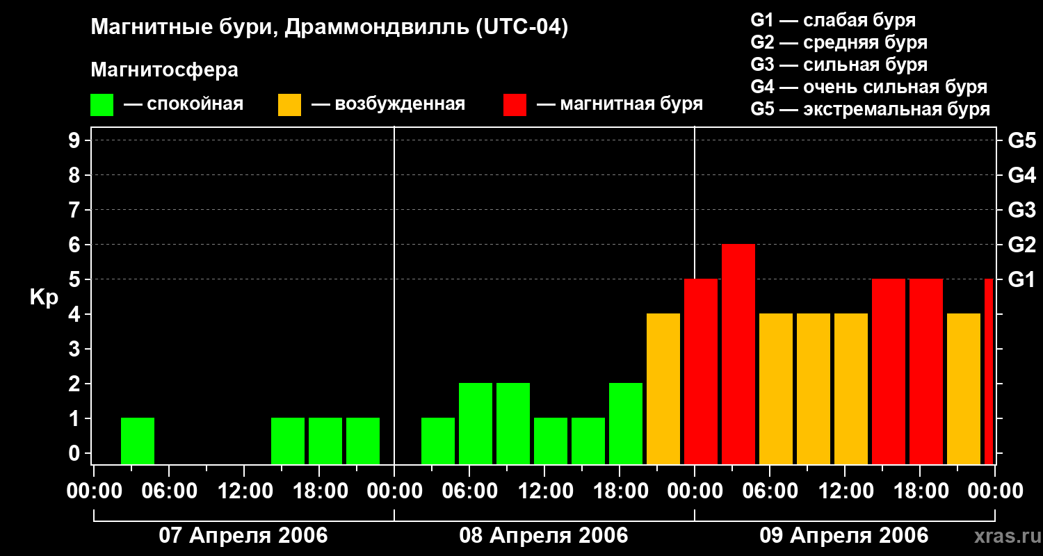 Магнитные бури в Драммондвилле 9 апреля 2006 года