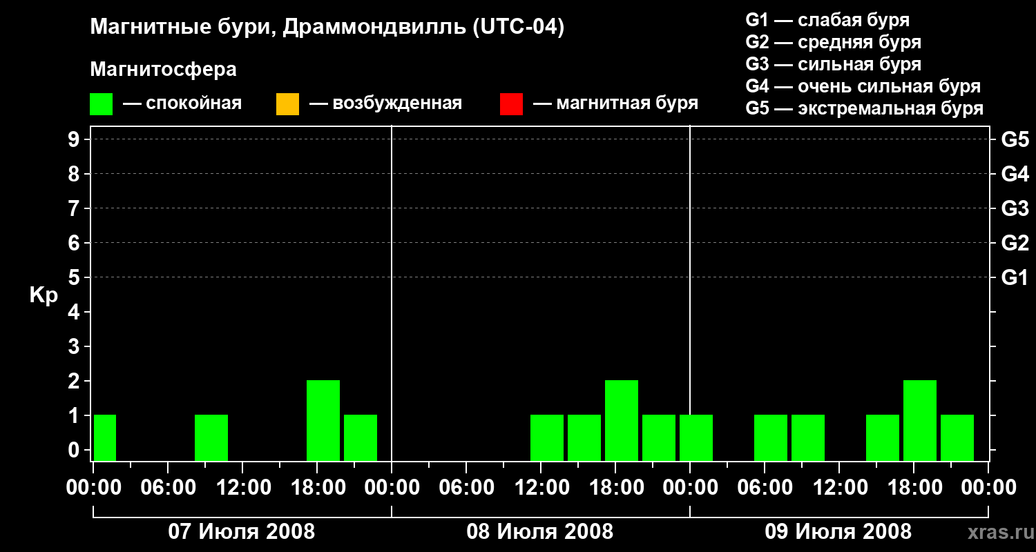 Магнитные бури в Драммондвилле 9 июля 2008 года