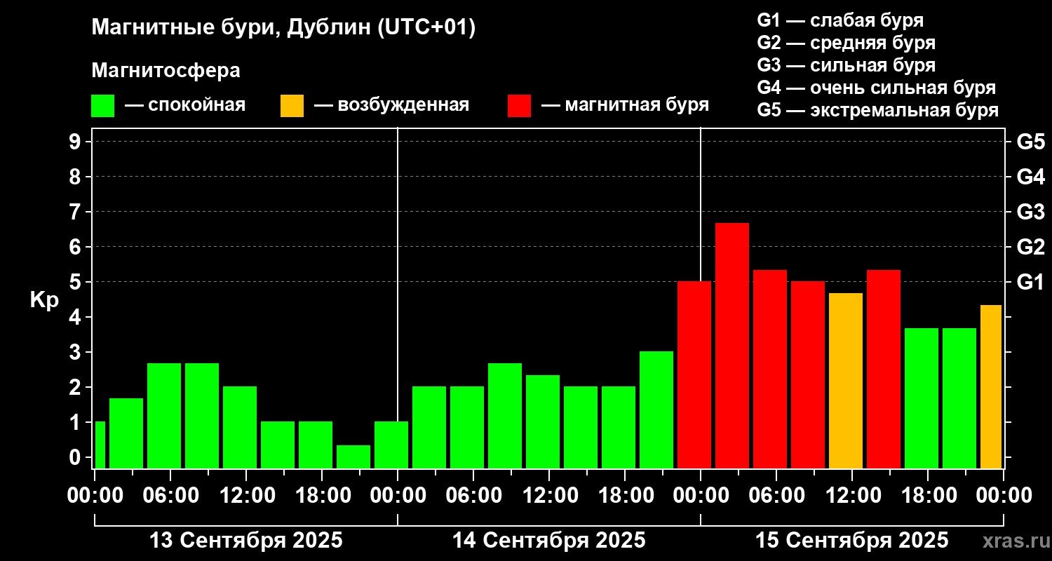 Магнитные бури в Дублине — 15 сентября 2025 года
