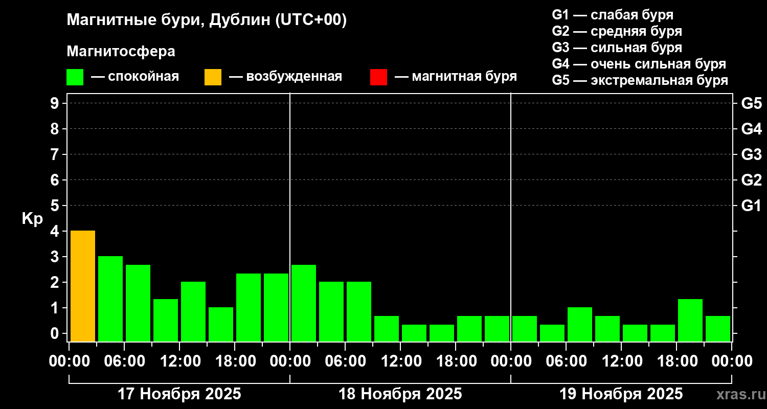 Магнитные бури в Дублине — 19 ноября 2025 года