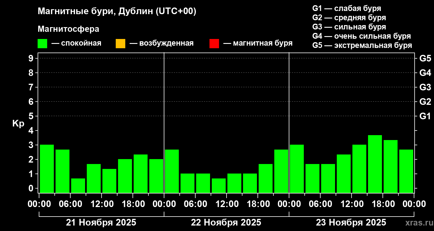 Магнитные бури в Дублине — 23 ноября 2025 года