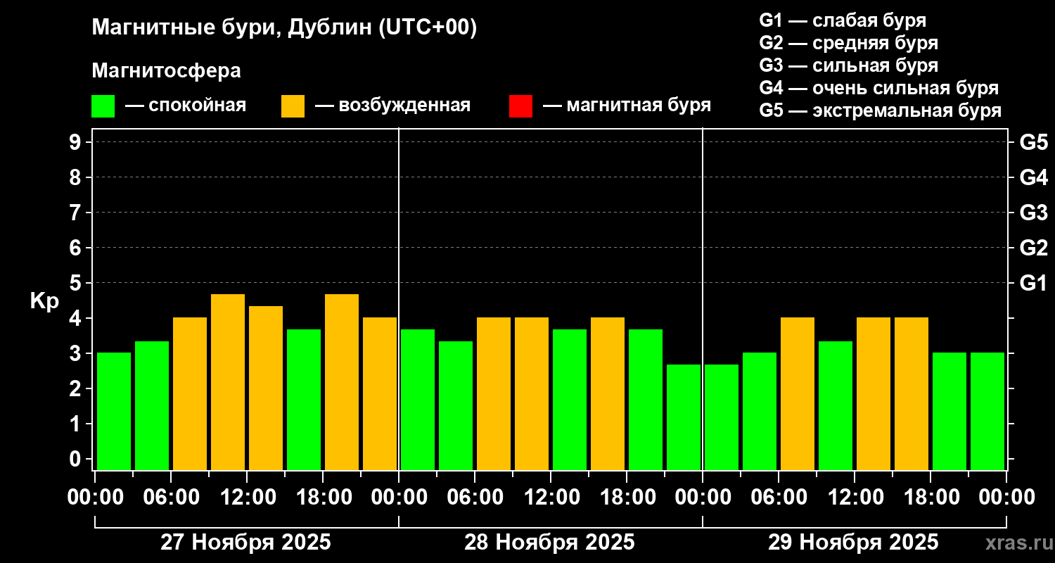 Магнитные бури в Дублине — 29 ноября 2025 года